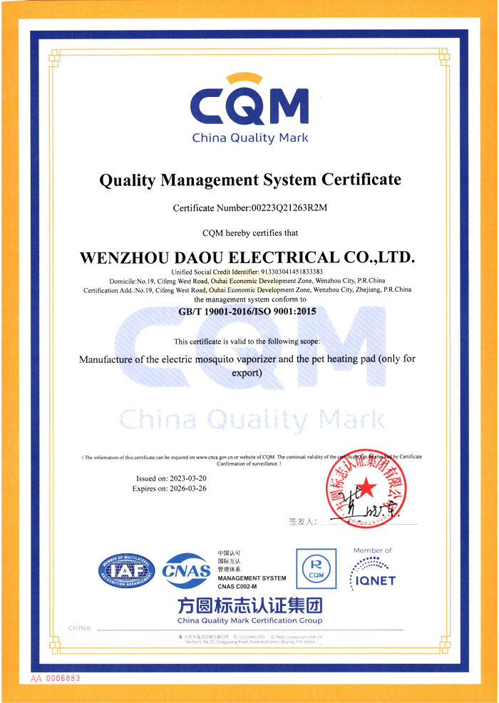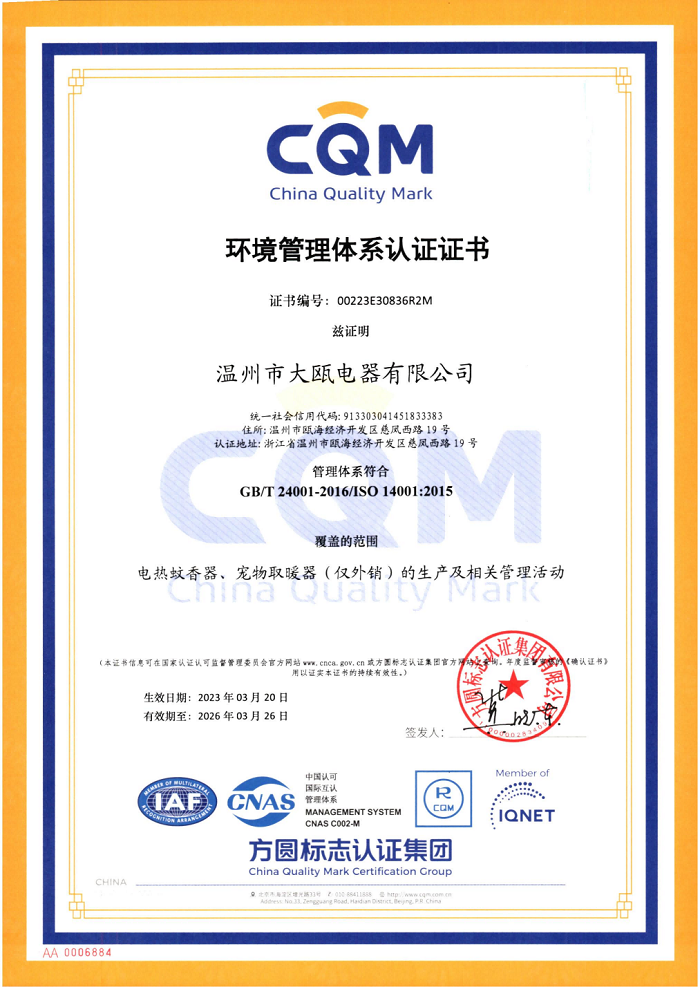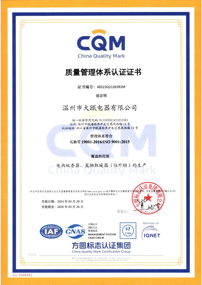 溫州市大甌電器有限公司(以下簡稱大甌公司)是集研發、制造為一體的日化電器專業生產制造商。 秉承“以人為本,以質取勝”的經營理念,三十余載櫛風沐雨,踐行“成就客戶、價值為本、誠信務實、追求卓越”的核心價值觀。大甌公司堅持以產研一體化的經營模式與差異化的競爭戰略為基點,持續推出細分市場上的多種類產品,豐富產品矩陣,滿足消費者多樣化需求,助力新型驅蚊行業高速發展。